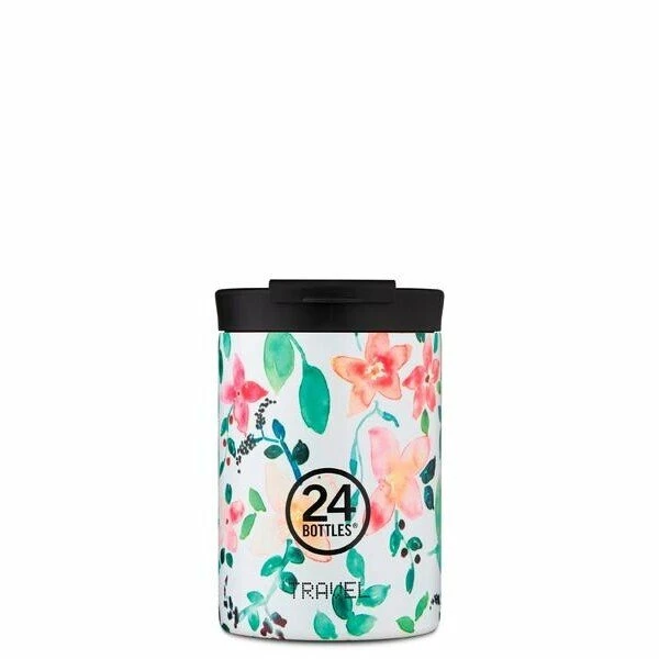Die feinen Blumenverzierungen machen den Thermobecher der Serie Travel Tumbler von 24Bottles zu einem wahren Blickfang.