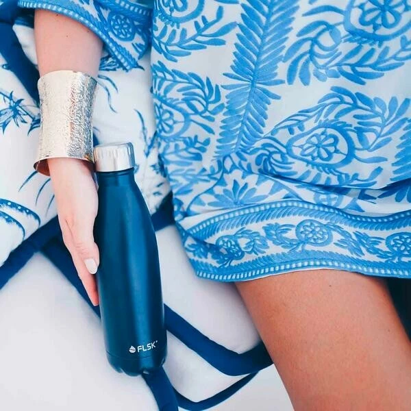 Eine Thermo-Trinkflasche mit so vielen Vorzügen, dass man die Plastikflasche sehr gerne beiseitelegt. Sie hält dicht, bewahrt ihre Form und Funktion, auch wenn sie einmal runterfallen sollte. Die Isolierflaschen von FLSK sehen in ihren farbigen Looks wie diesem schimmernden Mitternachtsblau einfach toll aus.