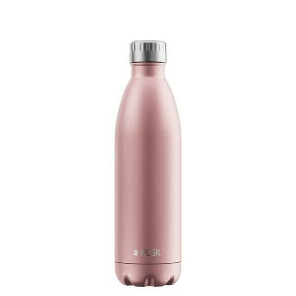 Eine Thermo-Trinkflasche mit so vielen Vorzügen, dass man die Plastikflasche sehr gerne beiseitelegt. Sie hält dicht, bewahrt ihre Form und Funktion, auch wenn sie einmal runterfallen sollte. Die Isolierflaschen von FLSK sehen in ihren farbigen Looks wie diesem schimmernden Roségold einfach toll aus.