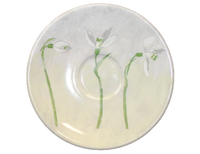 Frisches Design und klare runde Formen sind die Merkmale der Gien Keramik Serie Alice. Verziert ist das Service mit Schneeglöckchen, Stiefmütterchen und Traubenhyazinthen. Alice besteht aus Fayence Keramik, einer speziellen Tonware, die mit einer Glasur überzogen wird. Die passende Untertasse zur Espressotasse aus der Gien Alice Edition. Die Untertasse fühlt sich am wohlsten mit der dazugehörigen Espressotasse.