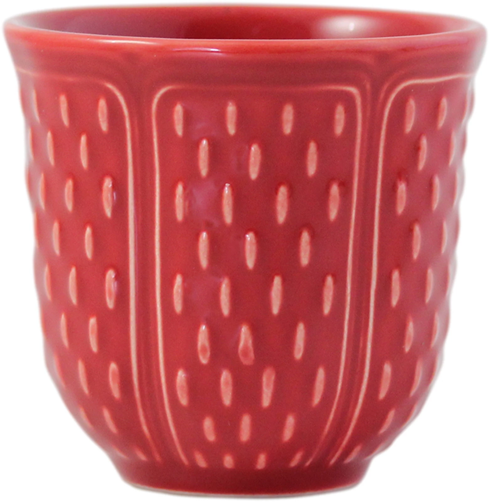 Der Gien Pont aux Choux Espressobecher Rubis ist einfarbig rot und mit einem Reiskorn-Dessin versehen. Er besteht aus Keramik und ist perfekt für Ihr kleines schwarzes Heißgetränk am Morgen oder auch zum Abschluss eines leckeren Dinners am Abend.