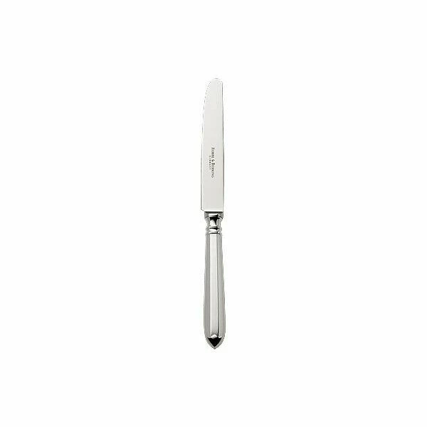 Das formschöne Menümesser Navette von Robbe & Berking ist in jeder Küche ein Hingucker. Die Versilberung mit 150 g Silber rundet zusammen mit der polierten Oberfläche ein edles und klassisches Design ab. Durch die praktische Länge von 21,8 cm und einer handlichen Breite von 1,2 cm liegt dieses Hohlheftmesser besonders gut in der Hand. Das Messer ist zusätzlich auch spülmaschinenfest und besitzt eine ausgezeichnete Qualität aus 1. Wahl.